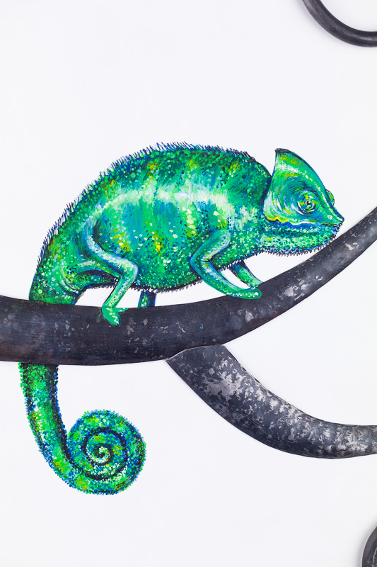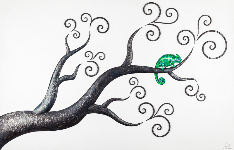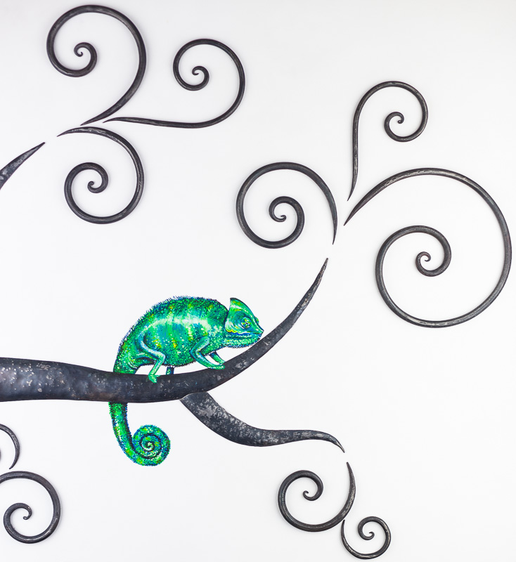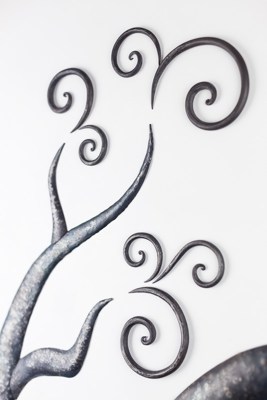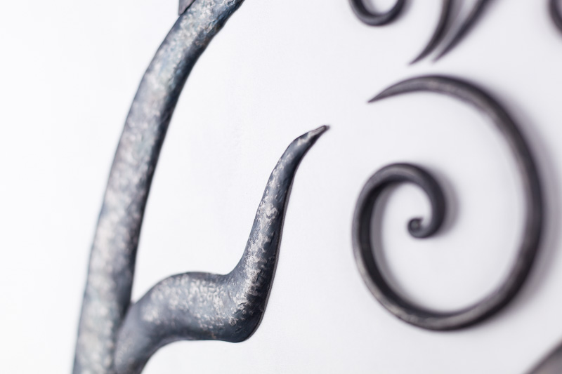 Ferro battuto brunito con finitura opaca.