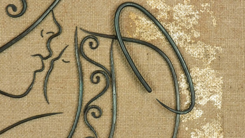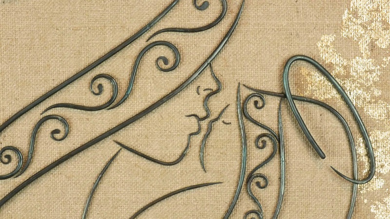 Foglia oro su tela Juta.