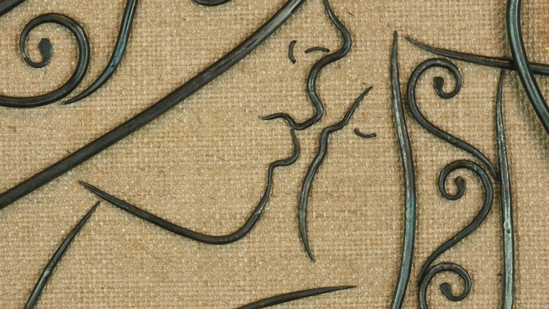 Ferro battuto brunito con finitura opaca.