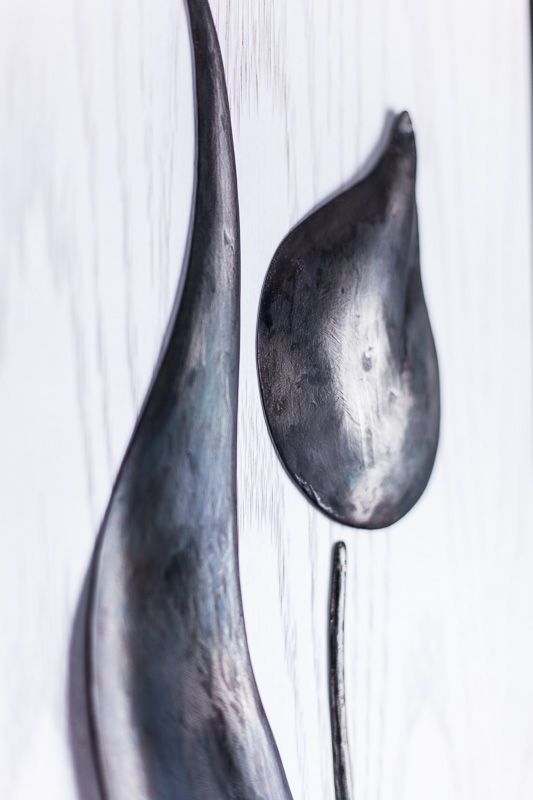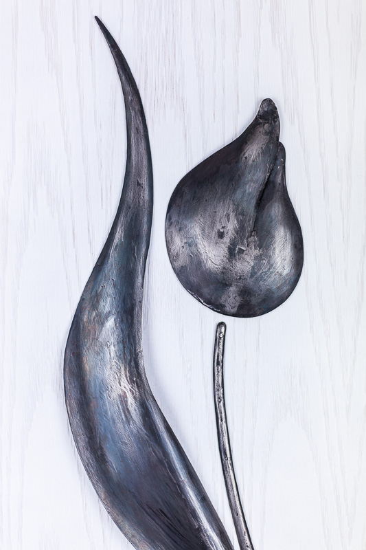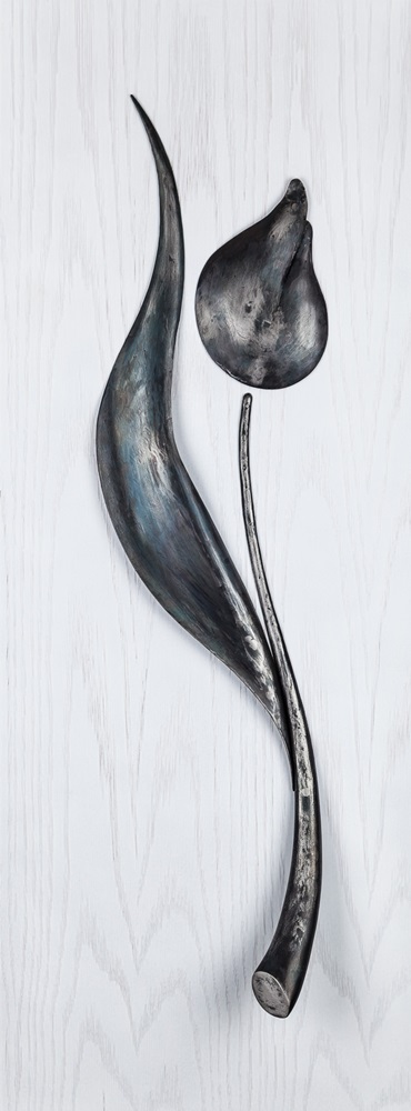 Ferro Battuto brunito con finitura opaca.